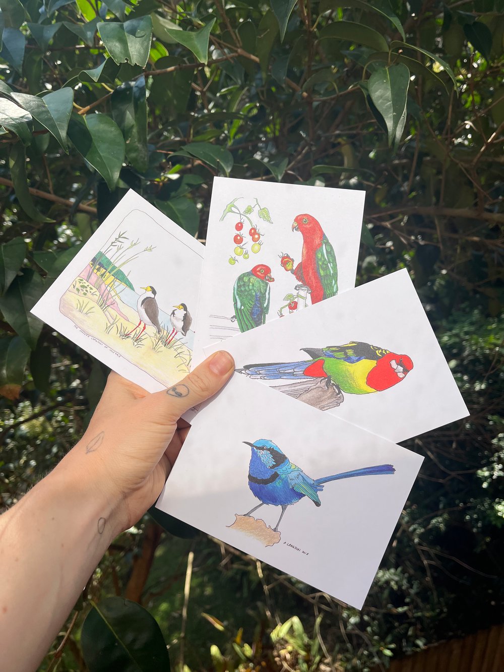 This is a pack of 8 postcards (or gift cards) printed with some of my most popular portraits of various Australian birds. Each pack contains 8 different bird portraits.